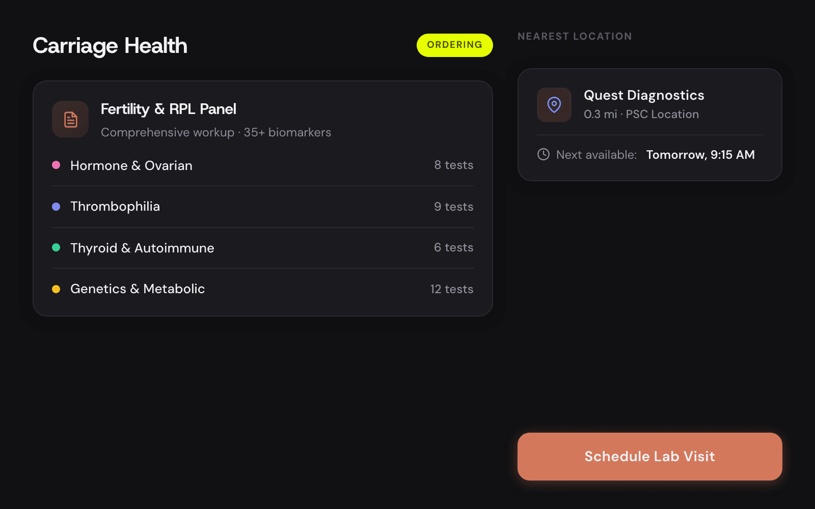 "After my second loss, my OB said to 'try again and see what happens.' Carriage Health's RPL panel found Factor V Leiden. Now I'm on Lovenox and 16 weeks pregnant. This literally saved my pregnancy."